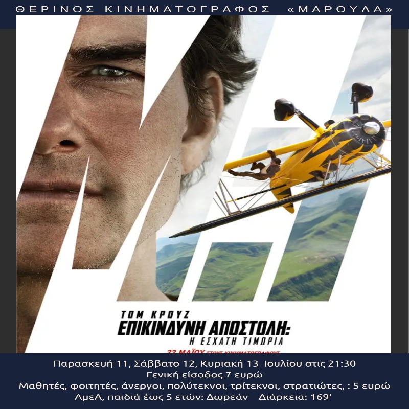 Οι ζωές μας είναι το άθροισμα των επιλογών μας. Ο Tom Cruise είναι ο Ίθαν Χαντ στη νέα ταινία “Επικίνδυνη Αποστολή: Η Έσχατη Τιμωρία” και βρίσκεται αντιμέτωπος με ένα επικίνδυνο πρόγραμμα τεχνητής νοημοσύνης (AI) που ονομάζεται «Οντότητα». Μπορεί να προβλέψει κάθε κίνηση και να προκαλέσει καταστροφή αν πέσει σε λάθος χέρια. Αφού γλίτωσε από ένα ολέθριο δυστύχημα με τρένο, ο Ίθαν συνειδητοποιεί ότι η AI είναι κρυμμένη πάνω σε ένα παλιό ρωσικό υποβρύχιο, ενώ παράλληλα εχθροί του παρελθόντος είναι στα ίχνη του.