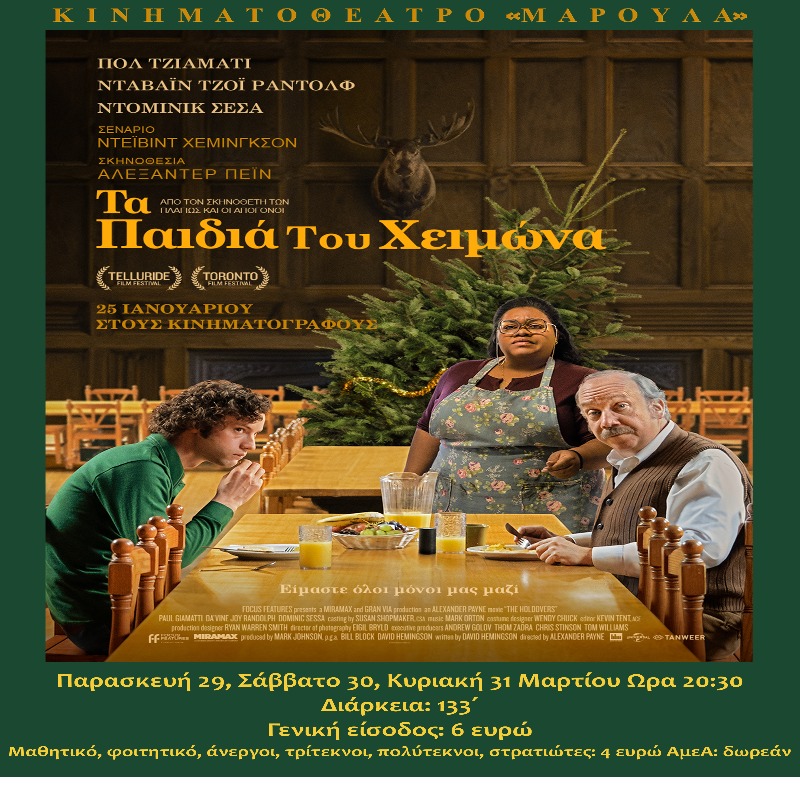 Η δραματική ταινία «Τα παιδιά του χειμώνα», του βραβευμένου σκηνοθέτη Αλεξάντερ Πέιν, προβάλλεται στο «Μαρούλα» από τις 29 έως τις 31 Μαρτίου.